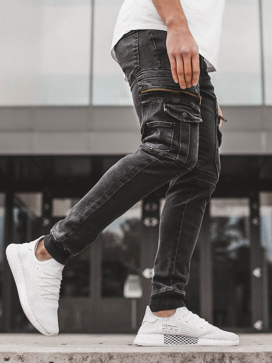 Los pantalones tienen un corte tipo jogger. Sus rasgos característicos son el corte suelto y la presencia de ribetes en las piernas. Los pantalones tienen bolsillos en la parte delantera, trasera y laterales. Las articulaciones de tela y las cremalleras decorativas ubicadas en las piernas les dan un aspecto original. Los pantalones están hechos de algodón con una pequeña mezcla de elastano. Esto los hace ajustarse bien al cuerpo, son cómodos de llevar , agradables al tacto, transpirables y resistentes a daños y arrugas.