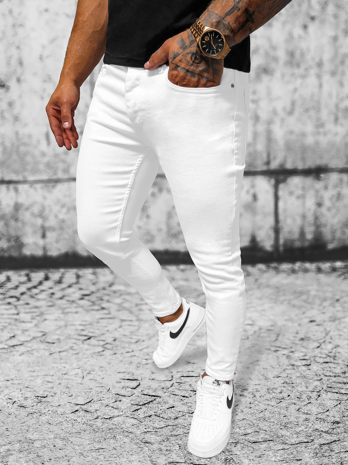 - El modelo (183 cm, 80 kg) lleva la talla 33.