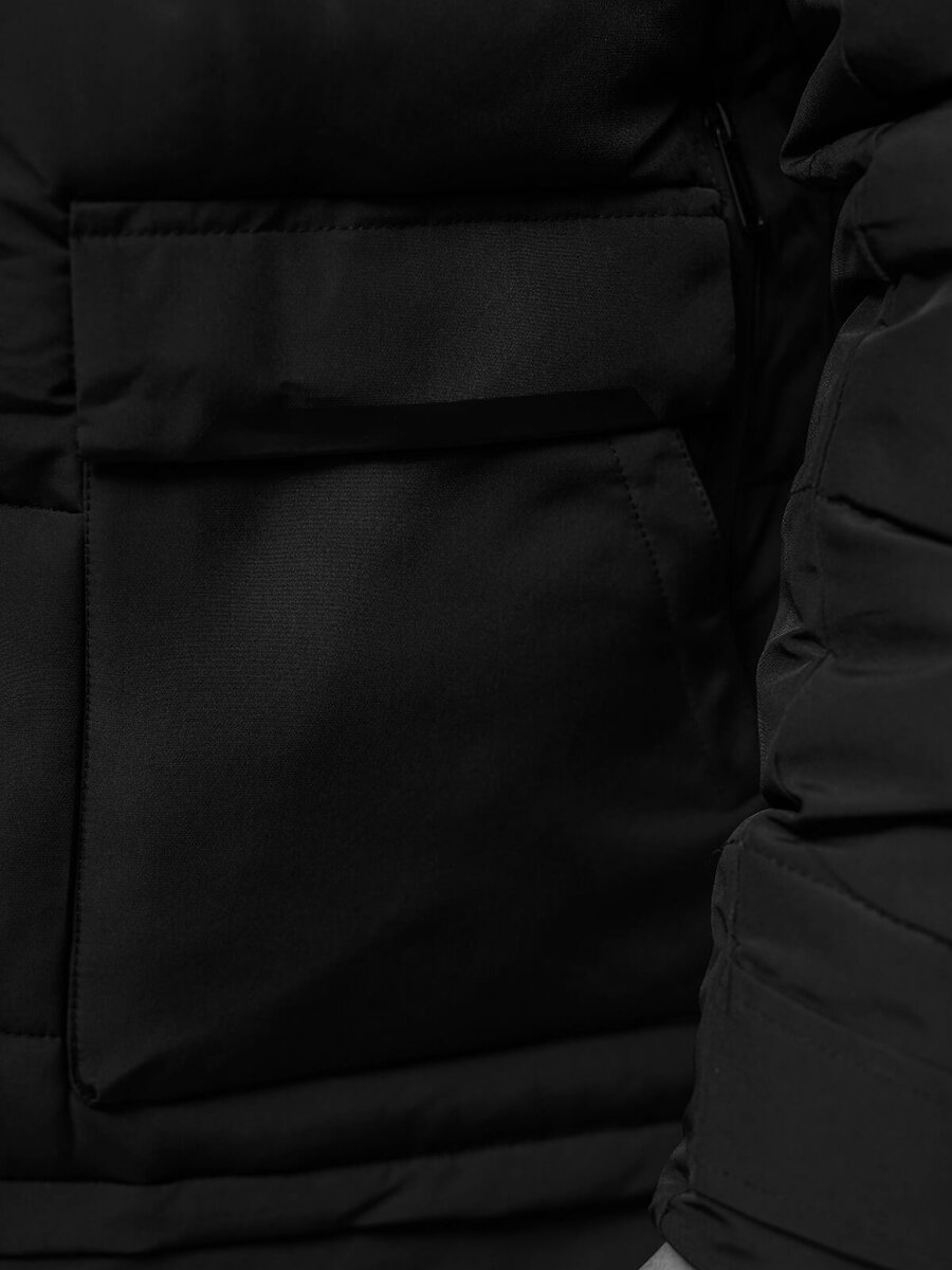 El abrigo está cubierto con un acolchado efectivo. Tiene 2 bolsillos en los laterales y 1 en el interior, donde podemos guardar el teléfono, las llaves o la billetera. Su parte inferior y las mangas han sido terminadas con ribetes que le dan un carácter deportivo. El abrigo está hecho completamente de poliéster de alta calidad, que es un material de secado rápido.