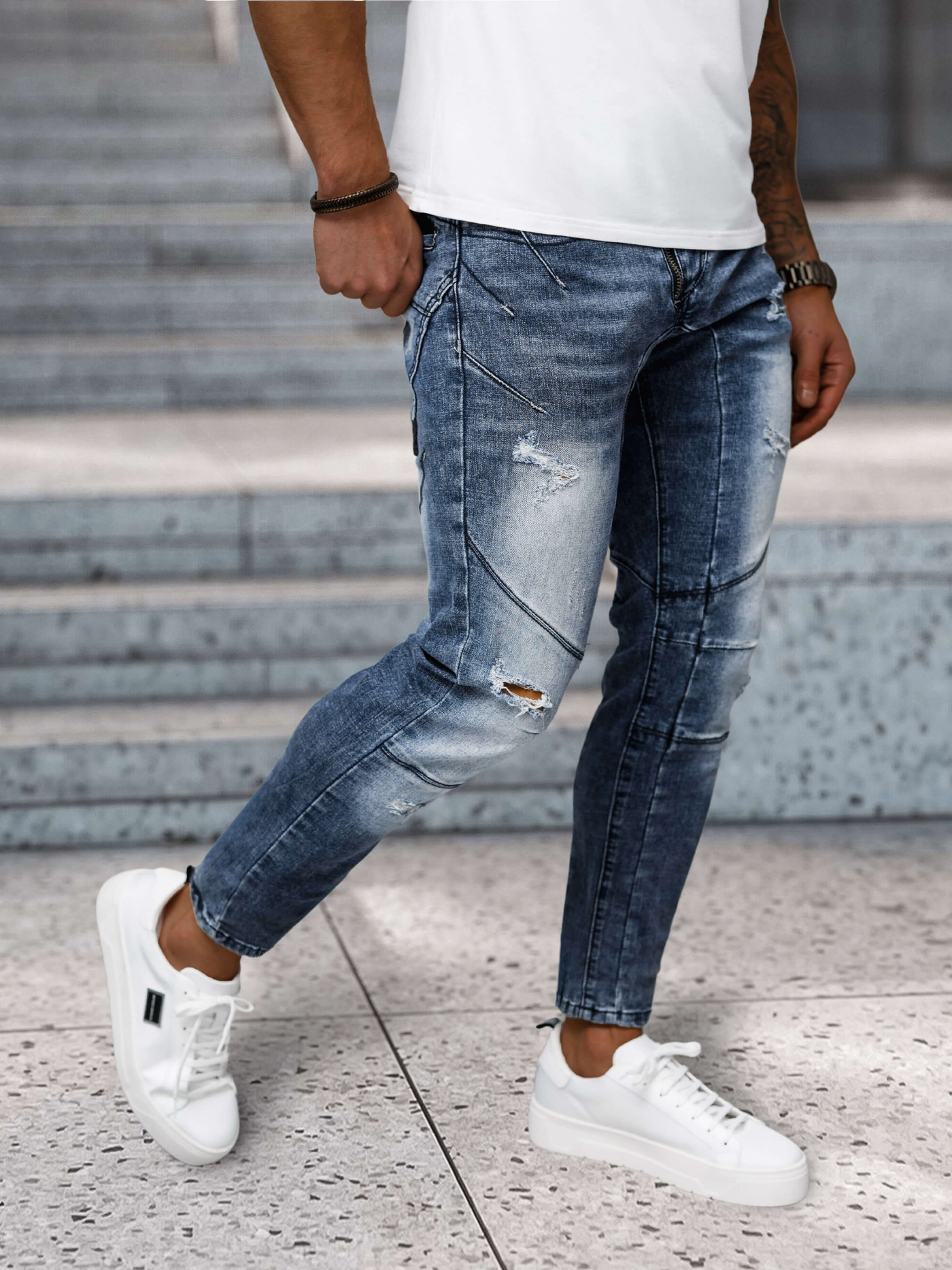 - El modelo (183 cm, 80 kg) lleva la talla 31.